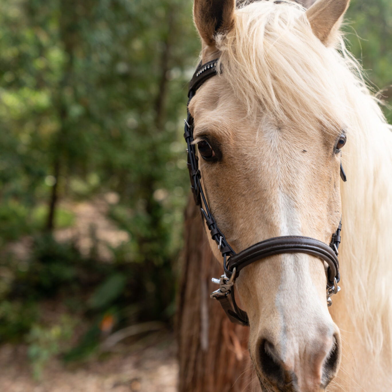 Wintec endurance saddles with sheepskin seat savers and leather bitless bridles.