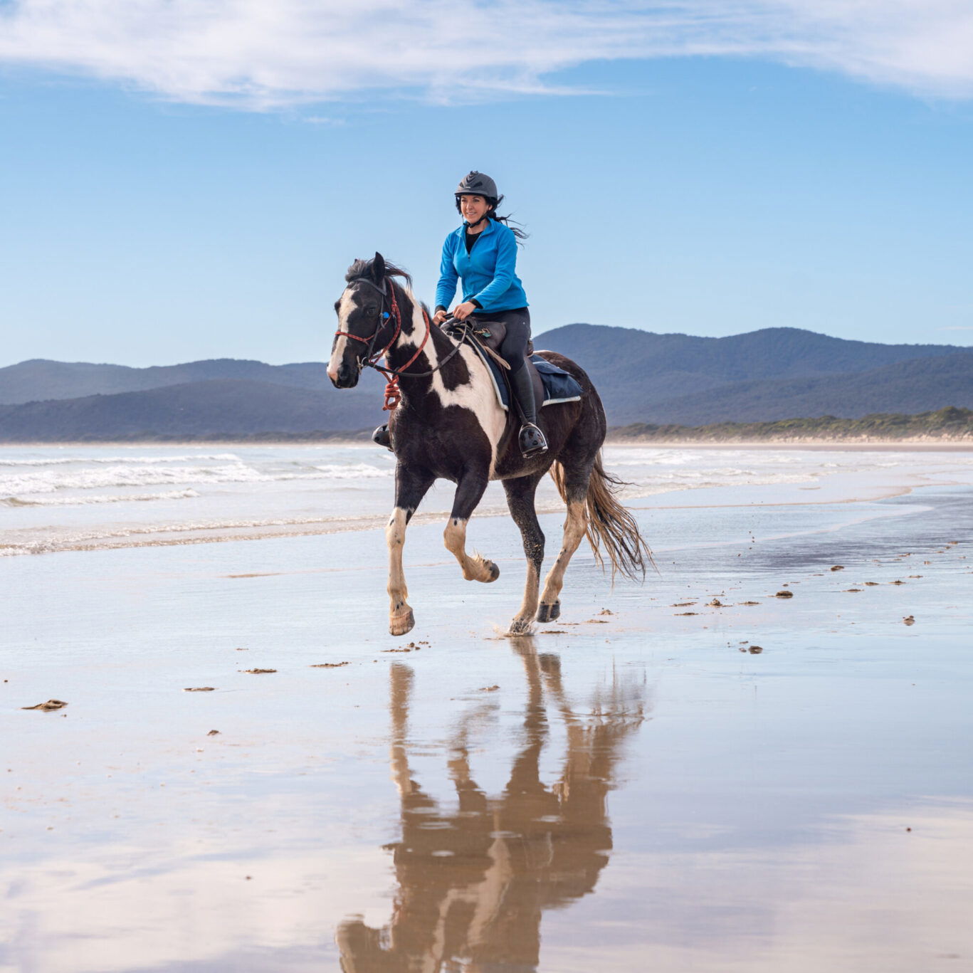 4 to 5 hours in the saddleAfter breakfast this morning, you’ll be driven to Narawntapu National Park: Tasmania’s smallest national park, and the only national park where horses are allowed on the trail. Here, you’ll set off on a glorious ride across the grasslands and sand dunes to the beach itself. This pristine, 7-kilometre stretch of coast is all but deserted on any given day. Dolphins can sometimes be spotted playing in the waves. The sense of freedom is palpable and the temptation to let loose in a long, windswept canter is all but irresistible (although you can keep to a trot if preferred).