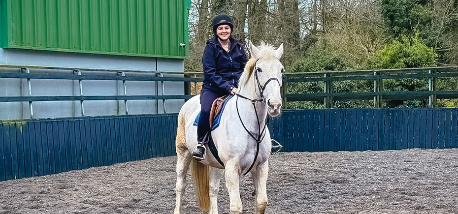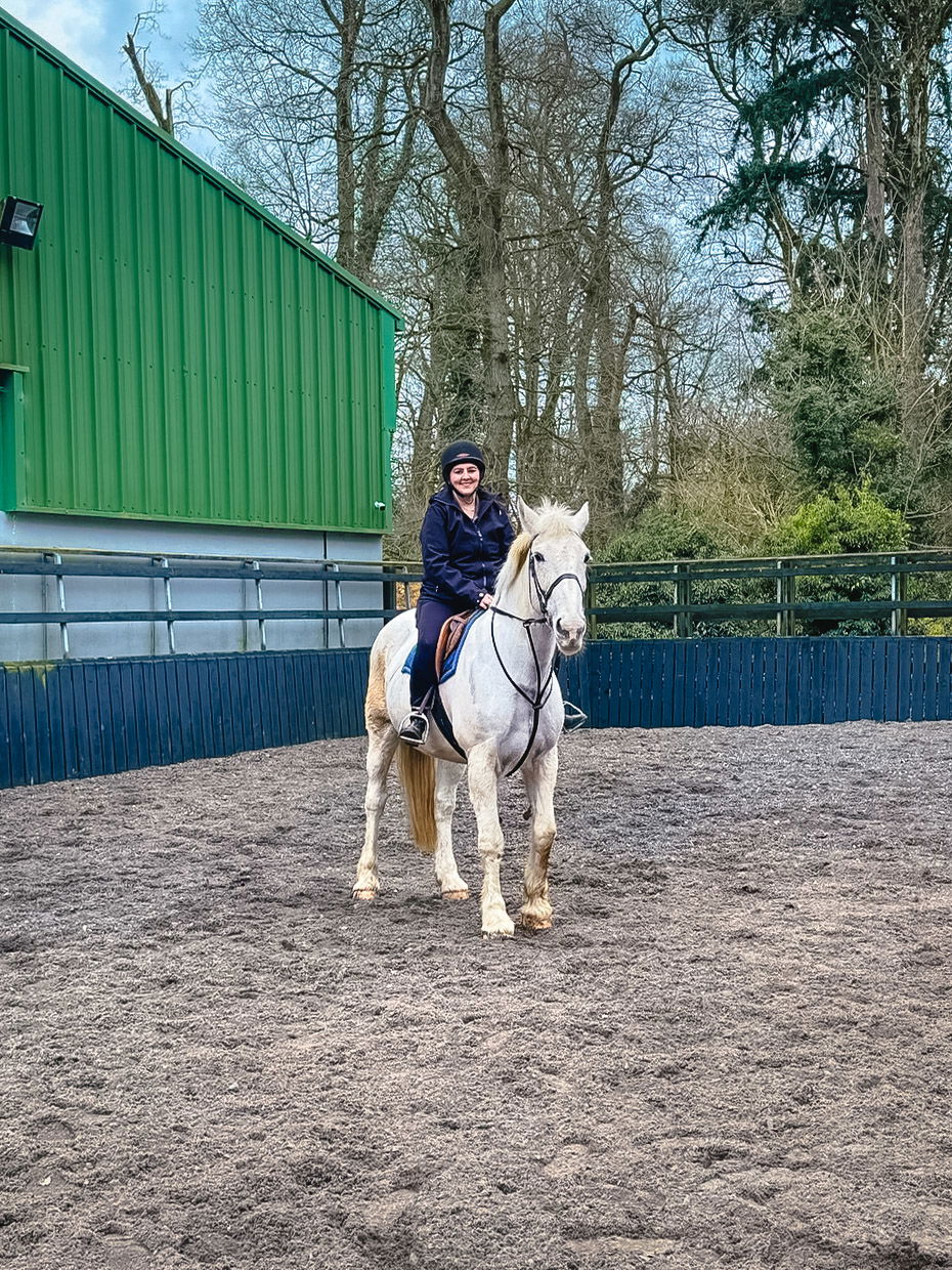 Reasonably confident riding a horse at a walk, a rising trot, and learning to canter.