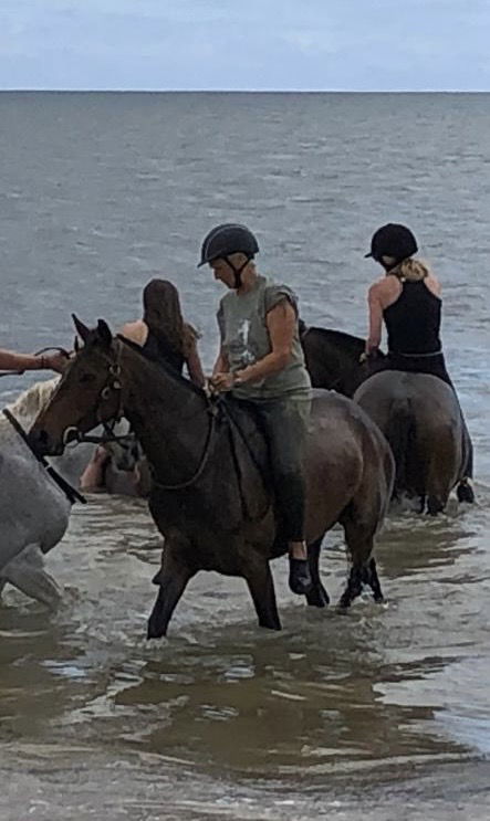 Reasonably confident riding a horse at a walk, a rising trot, and learning to canter.