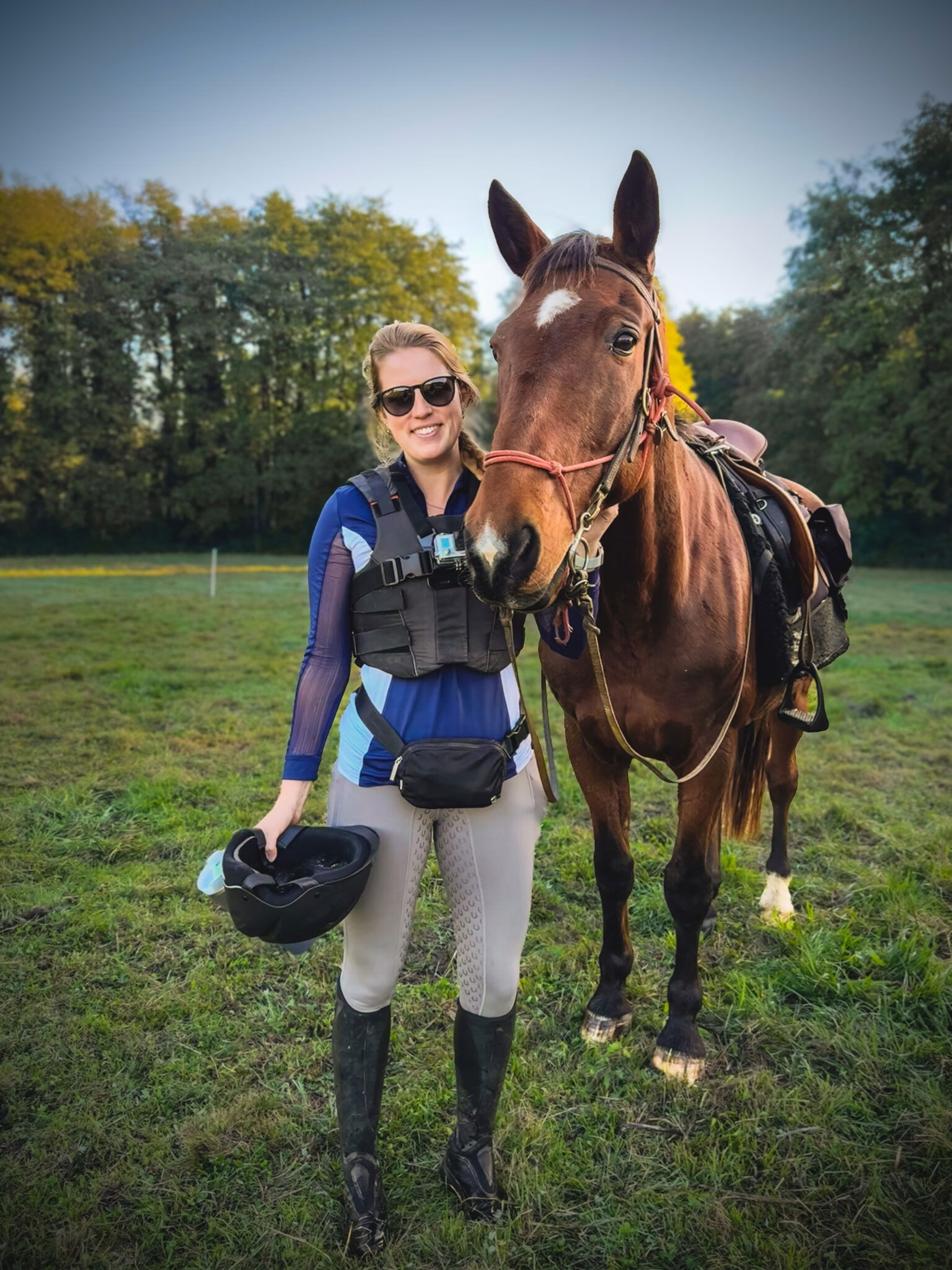 Confident and in control riding at all paces outside an arena, but not riding regularly. Comfortable and competent using aids {the language of your leg, seat and hands} to communicate with your horse.