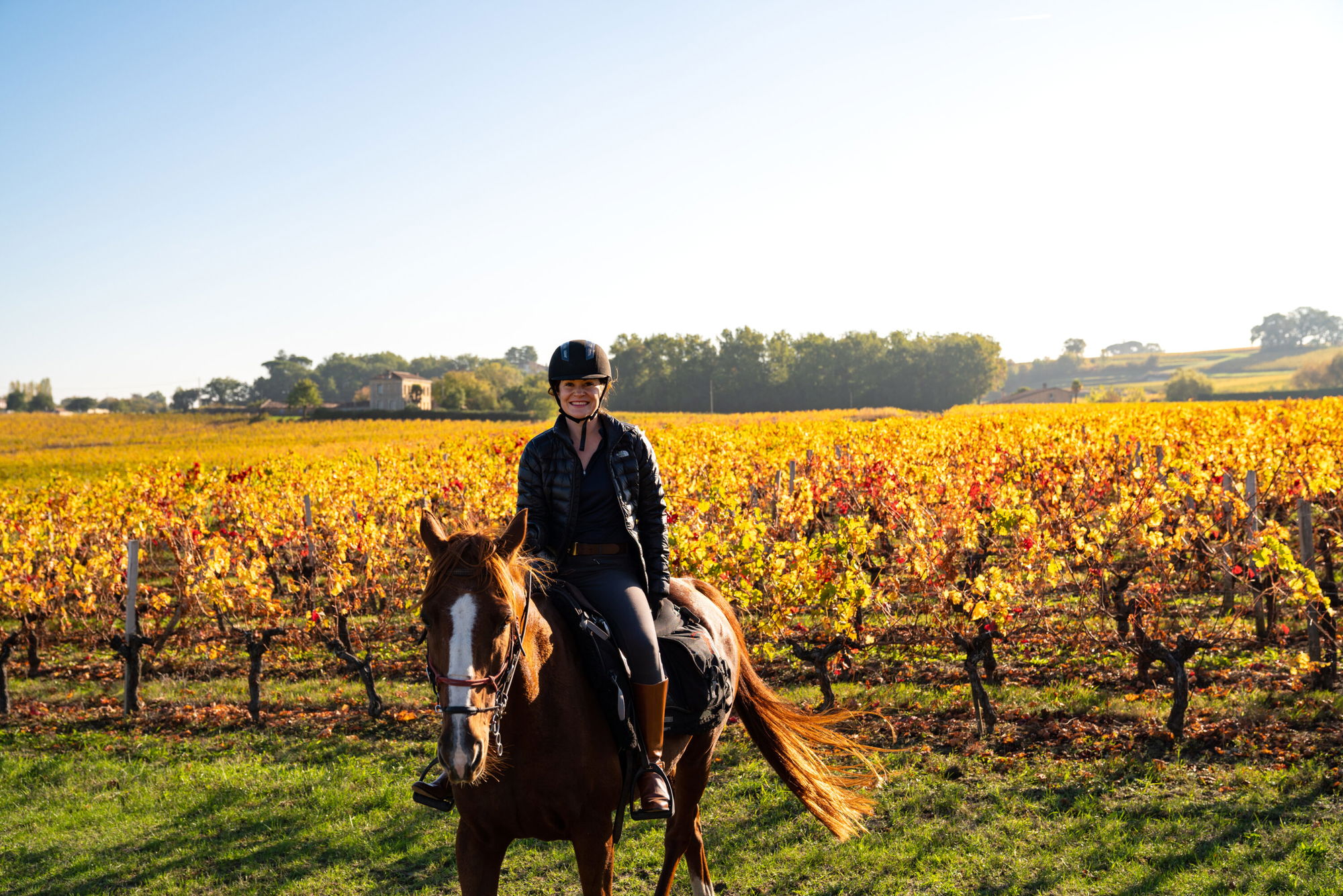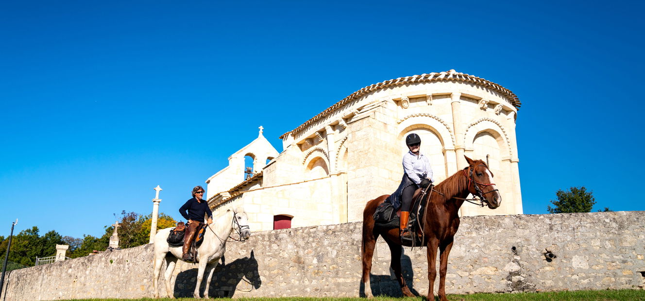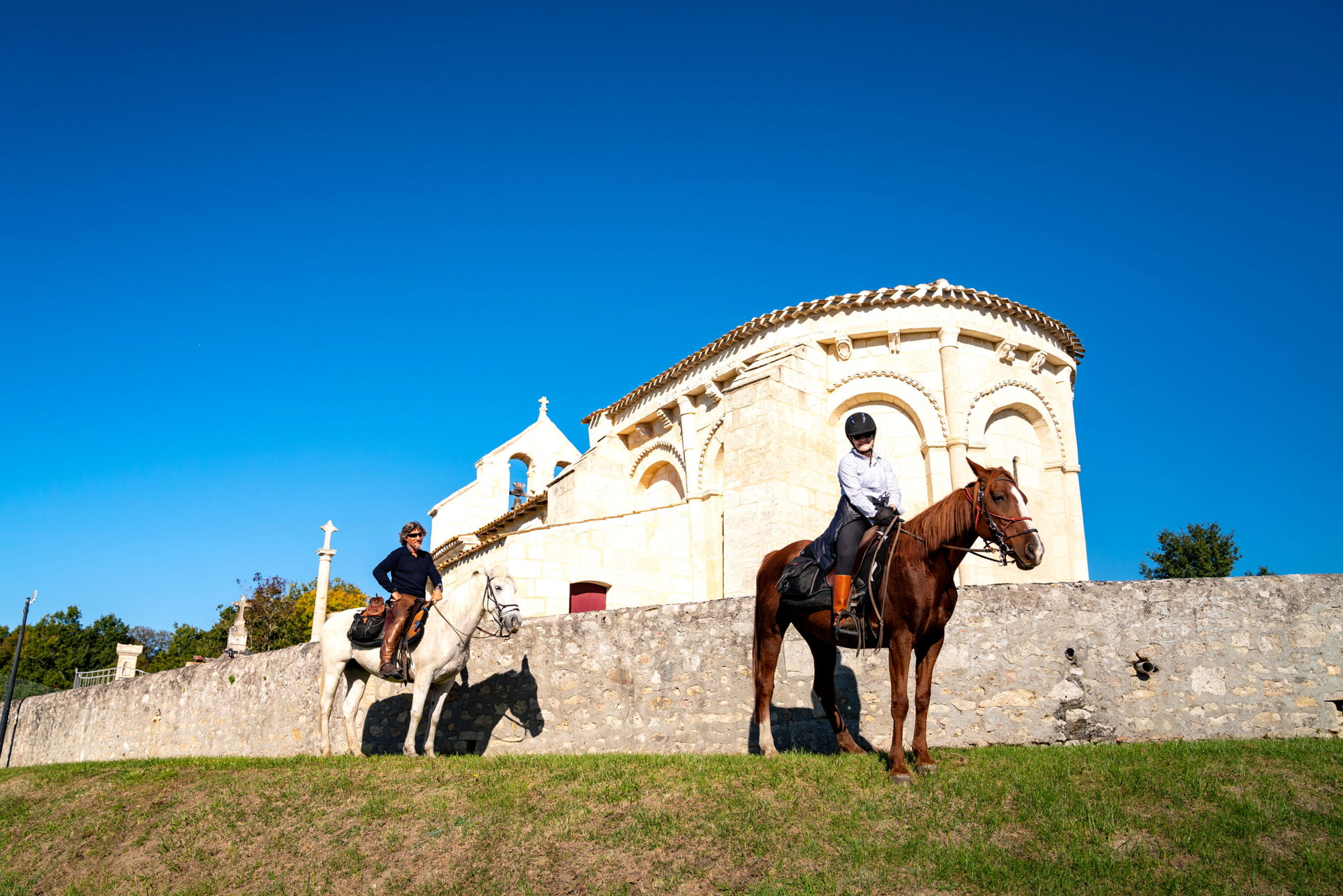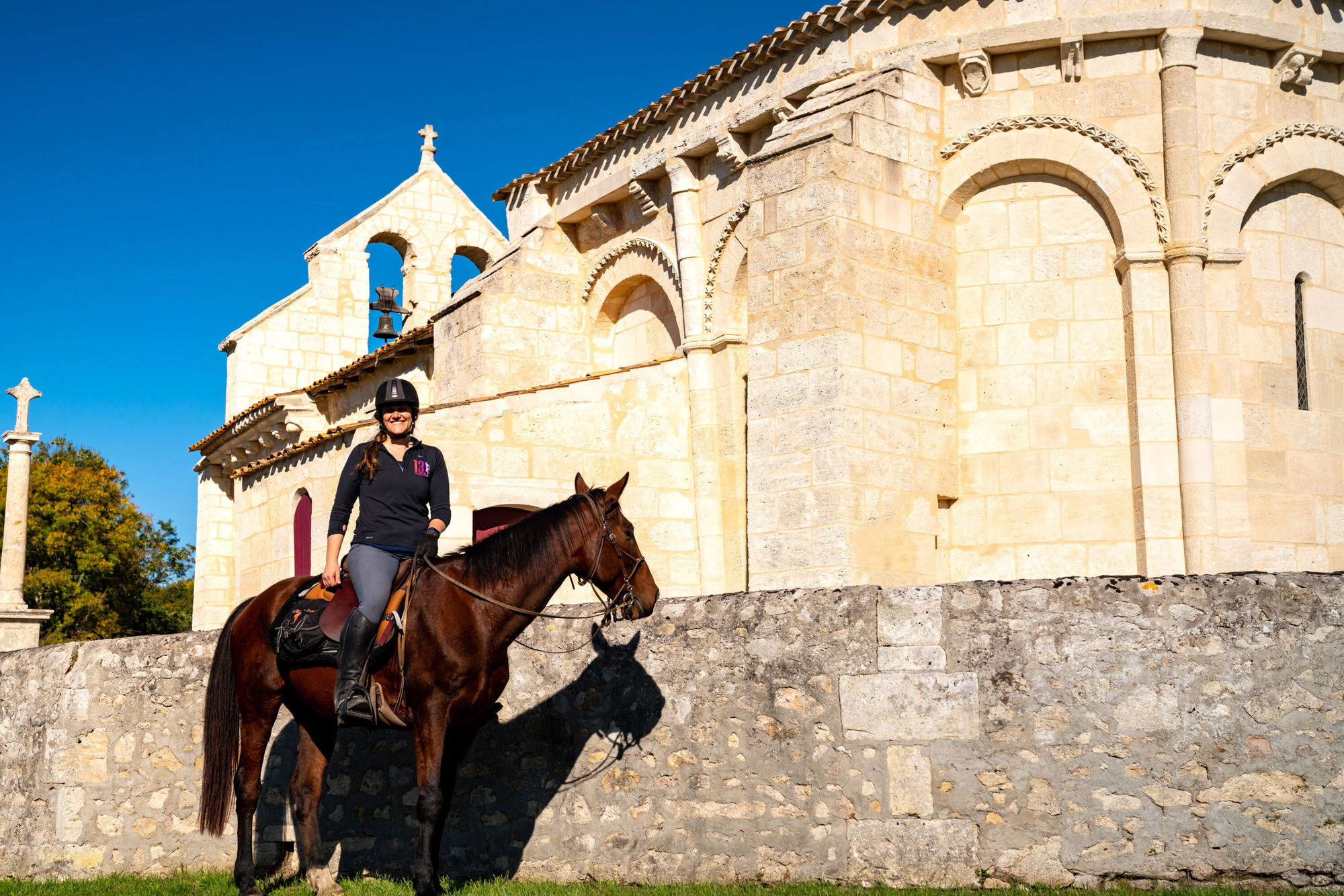4 to 5 hours in the saddleThis morning, the horses (and riders!) get a break as you explore the town of Saint-Émilion on foot. A city steeped in history, perched on a rocky promontory, Saint- Émilion and its wines both draw their originality from the limestone at their feet. Many towns in Bordeaux were constructed from limestone mined underground at Saint-Émilion in centuries past. This is evidenced by 200 kilometres of underground galleries, some of which can still be explored today. Many wineries even use these spaces as cellars.