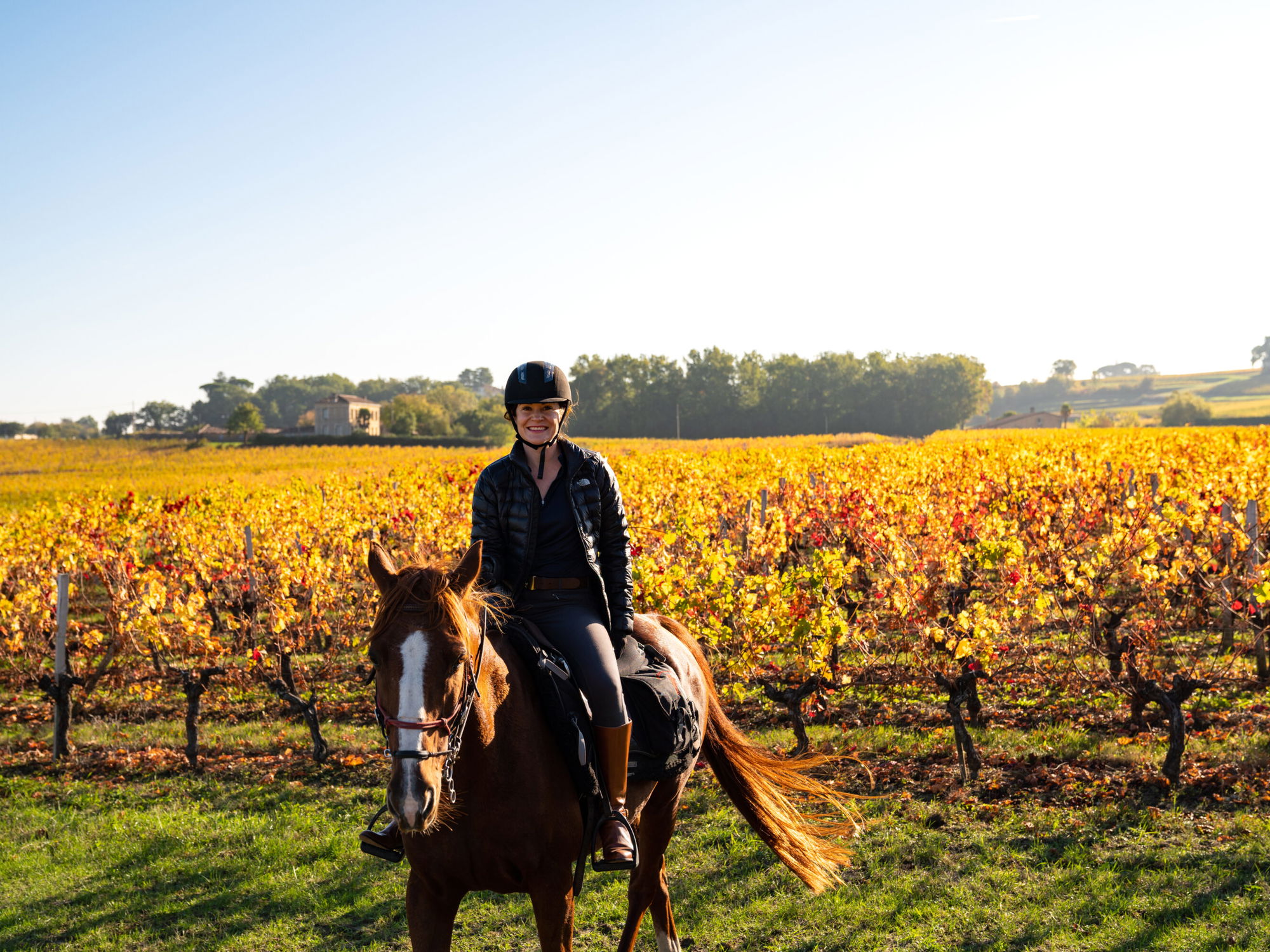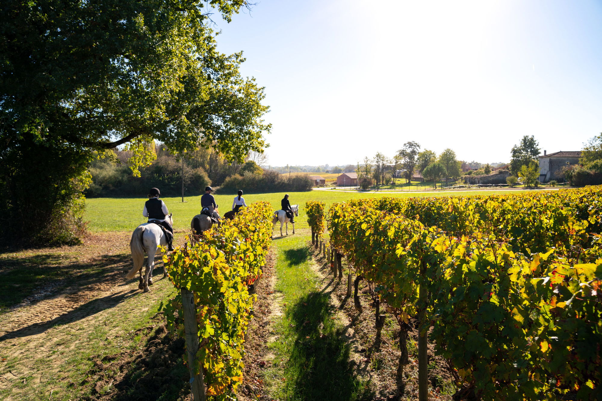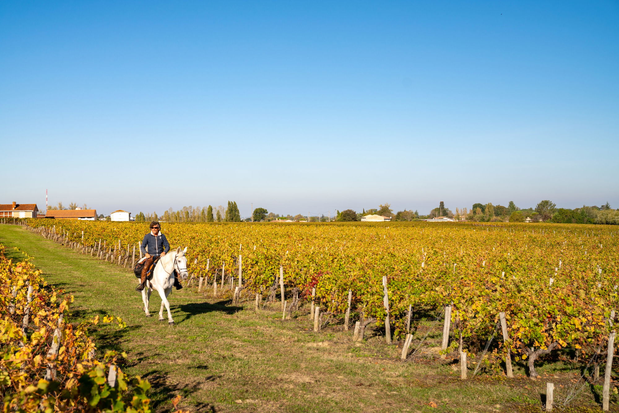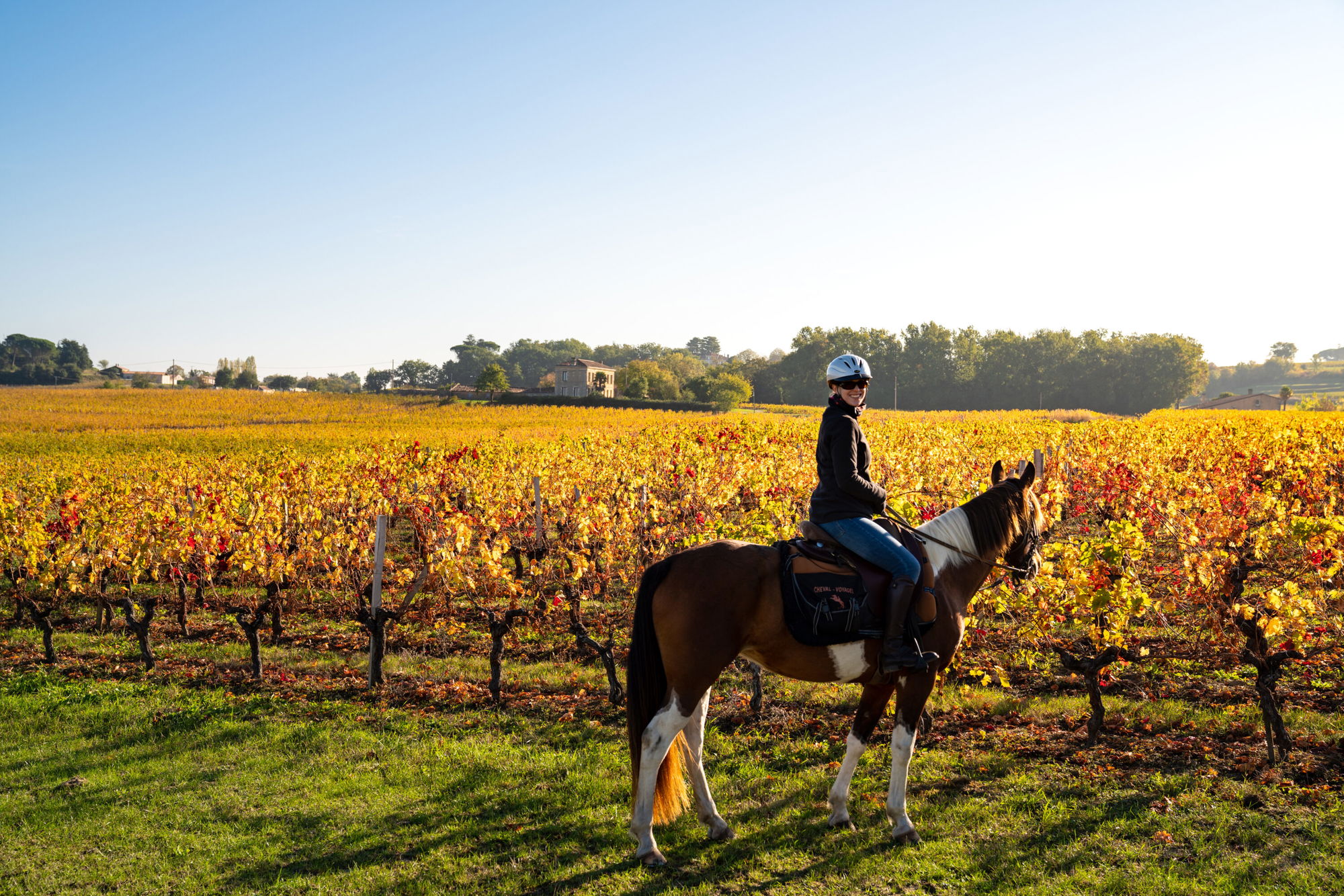 4 to 5 hours in the saddleThis morning, the horses (and riders!) get a break as you explore the town of Saint-Émilion on foot. A city steeped in history, perched on a rocky promontory, Saint- Émilion and its wines both draw their originality from the limestone at their feet. Many towns in Bordeaux were constructed from limestone mined underground at Saint-Émilion in centuries past. This is evidenced by 200 kilometres of underground galleries, some of which can still be explored today. Many wineries even use these spaces as cellars.