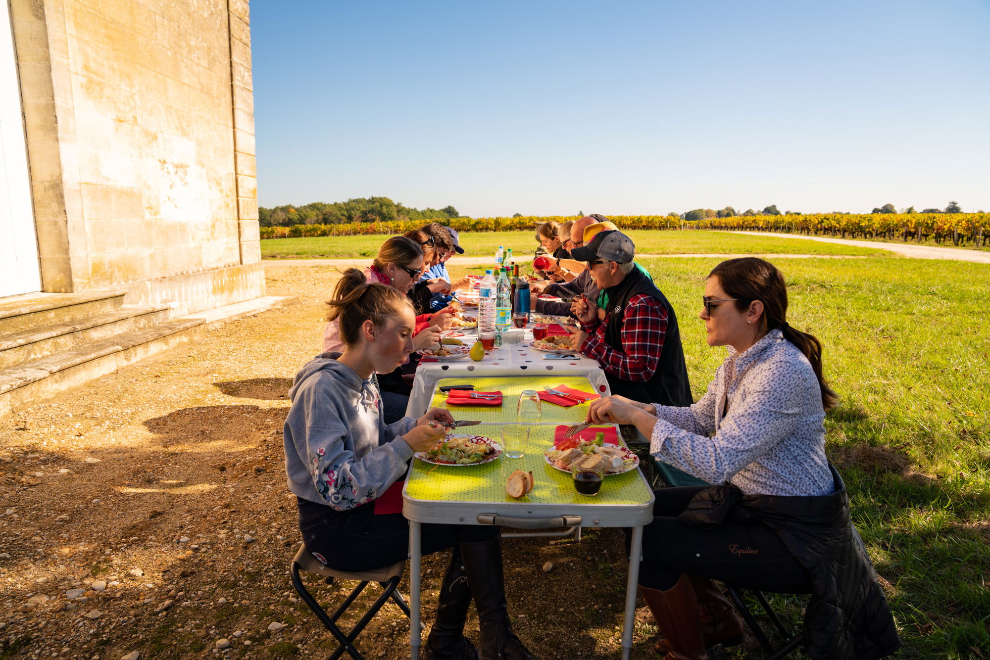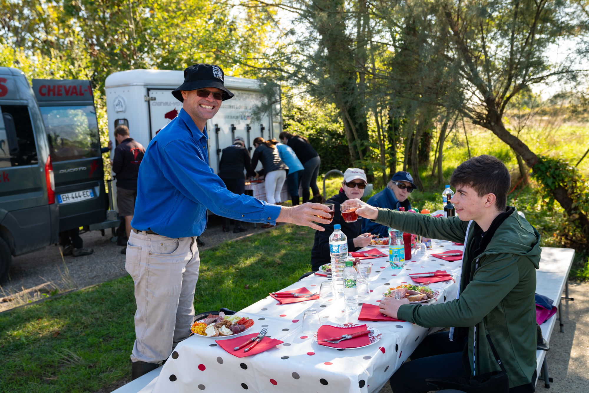After replenishing your strength with fabulous French picnic fare, the ride continues through more beautiful vineyards to Château du Courros. Built on the grounds of a pre-6th-century religious community dedicated to Saint Vincent (said to be the patron saint of winegrowers), this winery is famous for its ‘Bordeaux Supérieur’ blend, which you’ll be able to sample. Finally, you’ll reach the horses’ field and bid them adieu before returning to your accommodation in Ruch.
