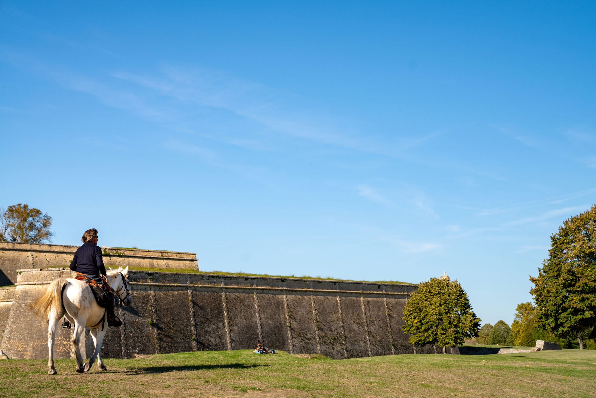 At around 3pm, you’ll hop back in the saddle for the ride to the coastal town of Blaye. 50 kilometres downstream from the city of Bordeaux, this town is famed for the Citadelle de Blaye, a fortress designed by Louis XIV’s legendary engineer, Vauban, to protect the estuary from enemy vessels. After your grand entrance on horseback, you’ll delve deeper into this architectural marvel with a tour of its 1.5 kilometres of ramparts, gates and underground passageways, topped by a convent, prison, barracks and powder magazine.