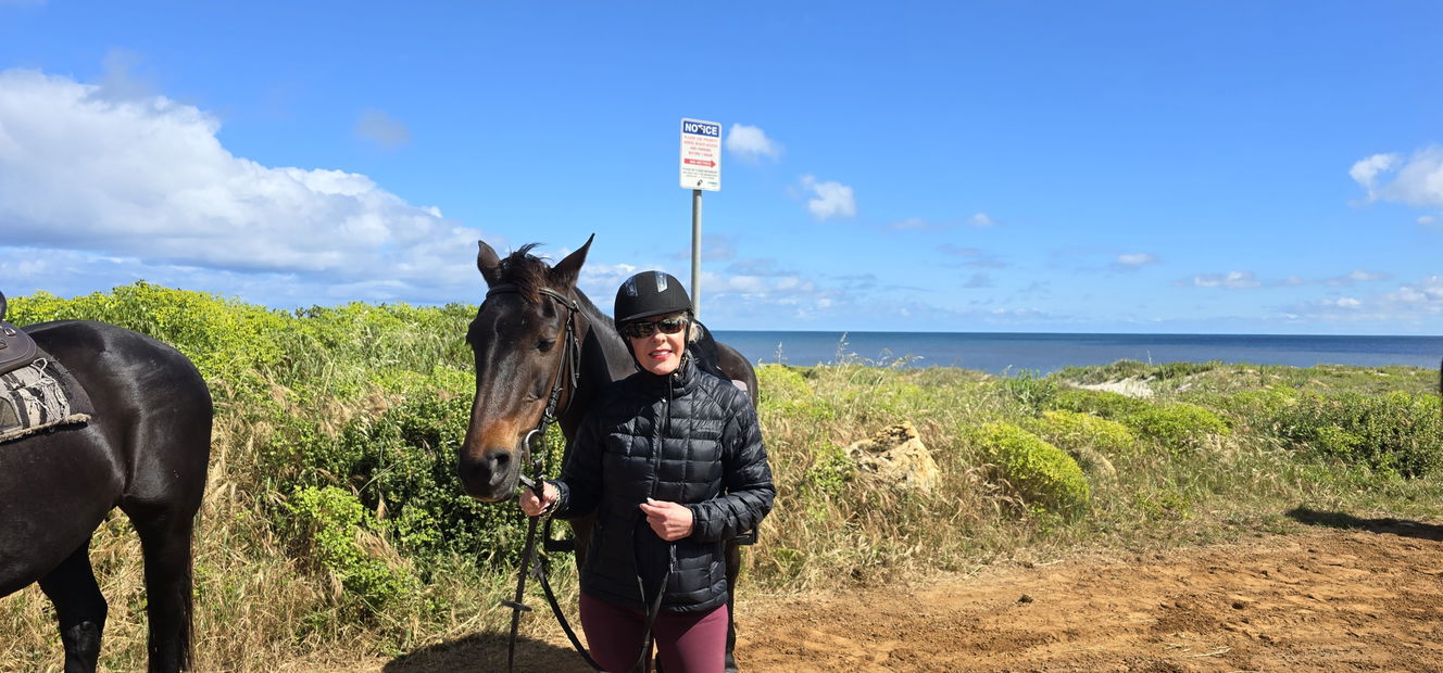 Reasonably confident riding a horse at a walk, a rising trot, and learning to canter.