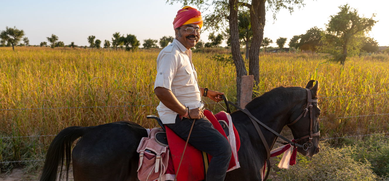 Approximately 2 hours in the saddleSpend the morning exploring the magnificent City Palace and browsing Udaipur’s markets before a lunchtime road transfer to Narlai. After a quick check-in at elegant Rawla Narlai, meet your Marwari horses for a gentle late-afternoon trial ride to Jodha Stud, where a home-cooked Rajasthani dinner is served in the atmospheric stable complex.