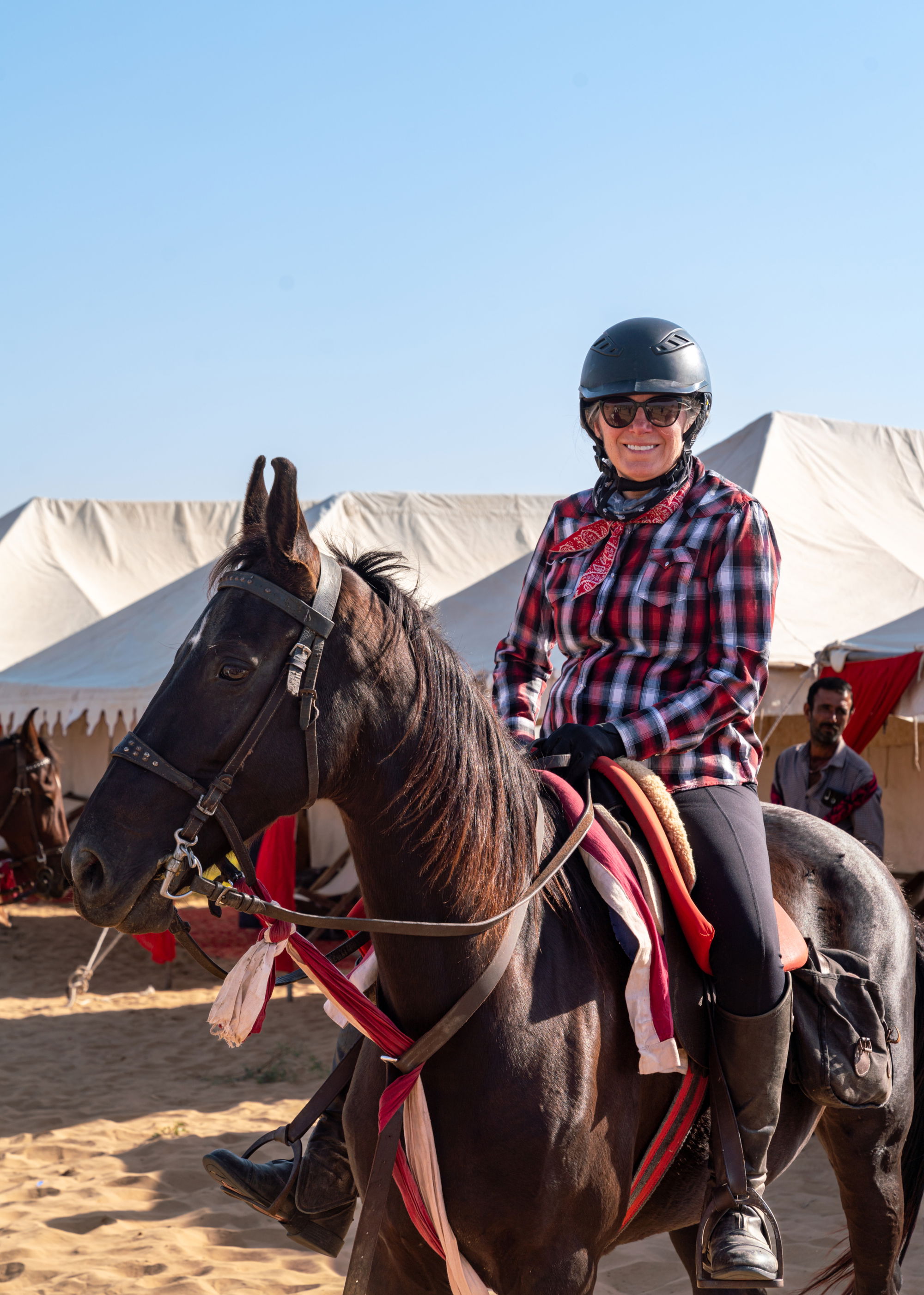 2 hours in the saddleA short road transfer brings you to your desert tented camp at Mathania, where you’ll meet your Marwari horses and settle in. After lunch in camp, enjoy a relaxed afternoon trial ride to begin building your partnership with your horse and get a feel for the desert terrain.