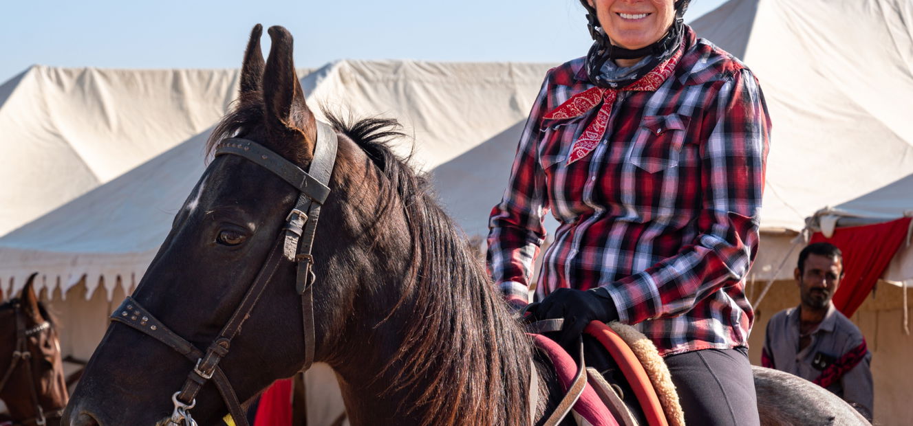 1 to 2 hours in the saddleRide early to the fair, dismounting to explore the stalls and tents with a guide, before returning to camp for lunch and rest during the heat of the day. As evening falls, head back into the fair to experience its colour, movement and atmosphere at its liveliest.