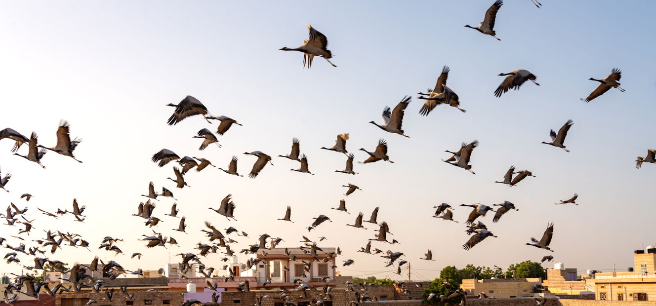 4 to 6 hours in the saddleYour final day in the saddle makes the most of open terrain and the strong partnership built with your horse. Arrive at Khichan, famed for its winter gathering of thousands of migratory demoiselle cranes, and farewell your horses as they travel home for a well-earned rest.