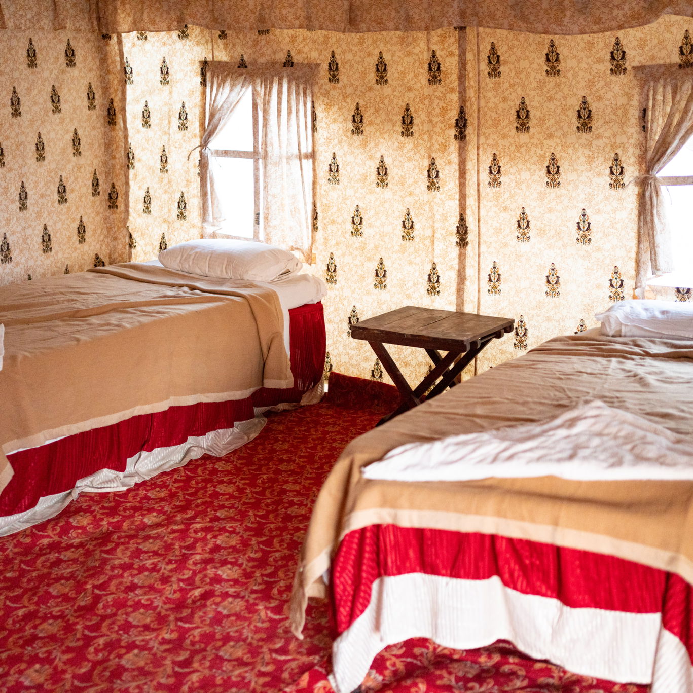 Depending on your chosen itinerary, accommodation will be a mixture of heritage castles, palaces, traditional hotel and tented camp accommodation. If booked on an itinerary that has camping, all tents have ensuite bathrooms (with bucket showers and bucket flush toilets) and come fully equipped with all furniture, linen, towels etc.