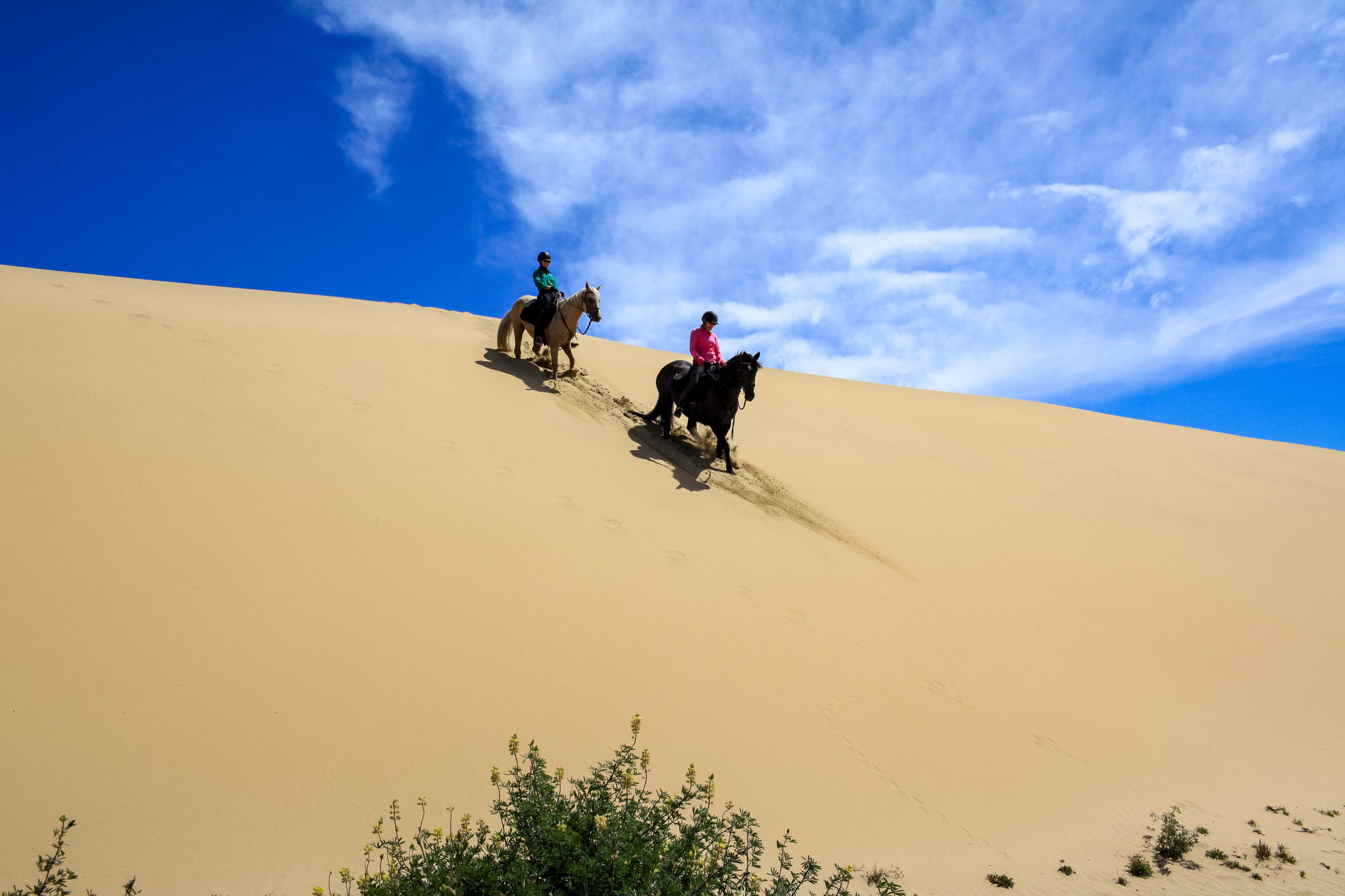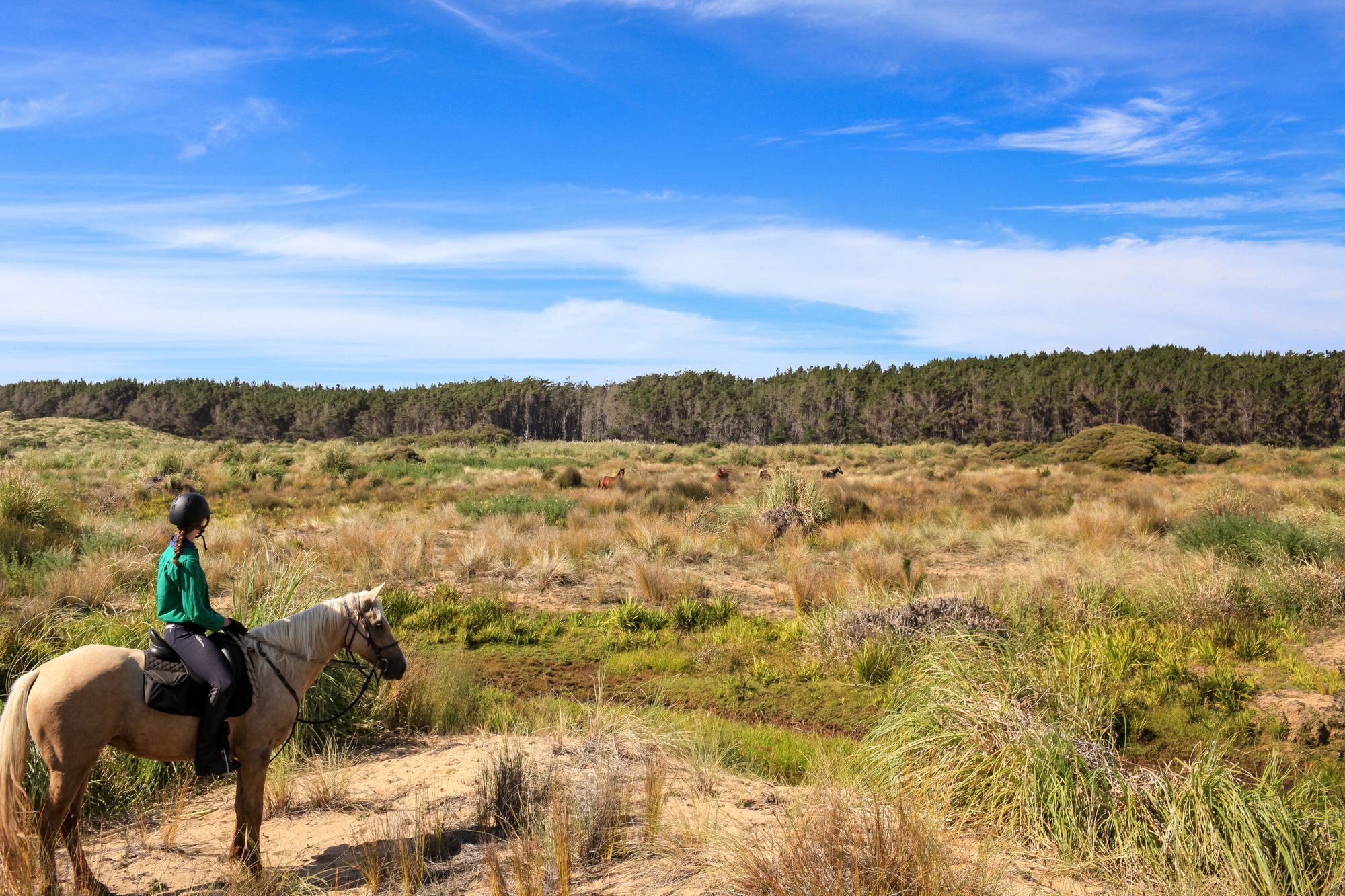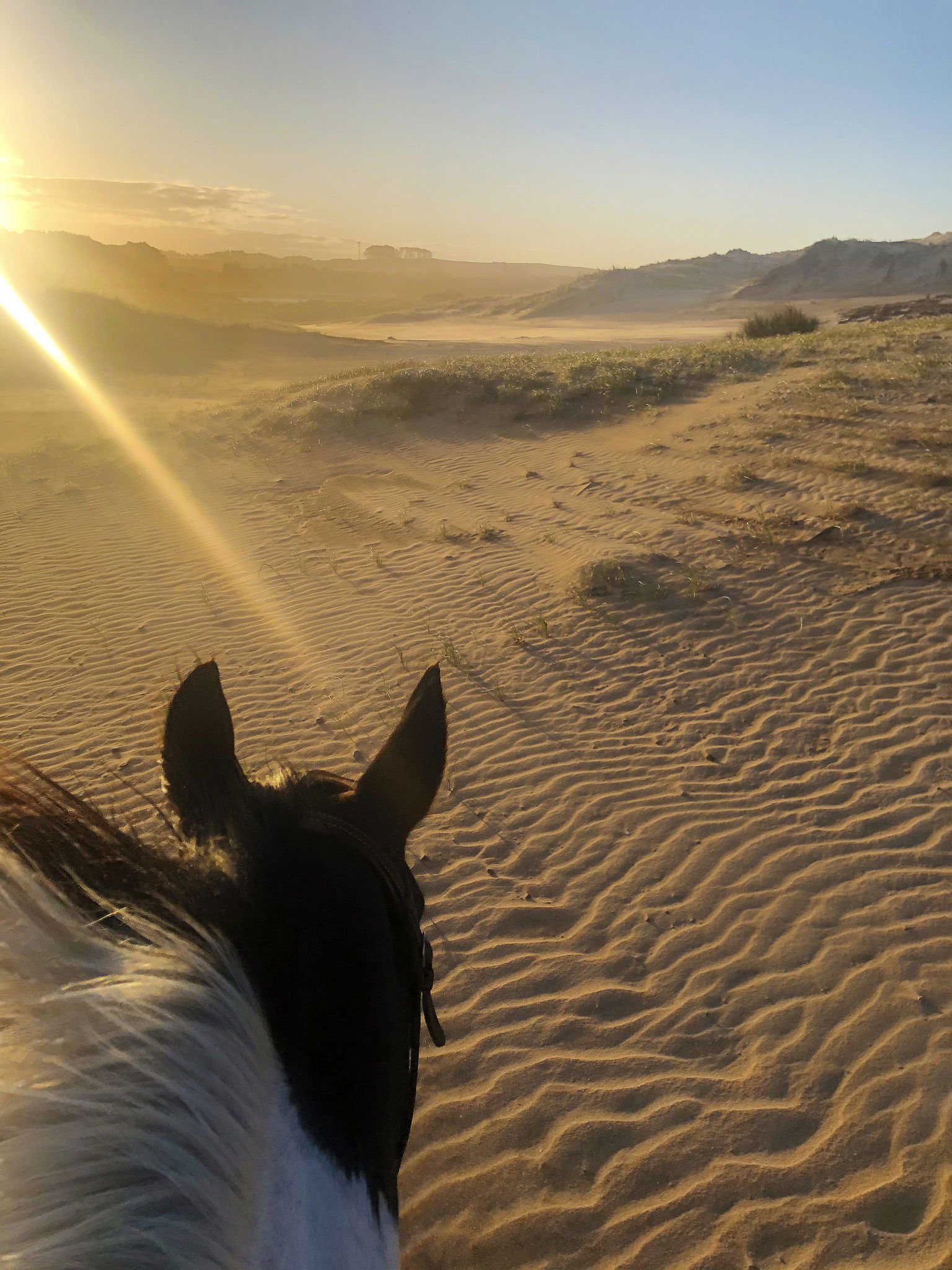 Today’s ride is jam-packed full of SO MANY highlights: lovely long canters up and down the beach, sand dune riding (it’s exhilarating, let me assure you) and tiptoeing through ancient forests laden with ferns.