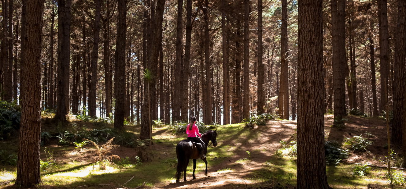 Cantering through sub-tropical forests of kauri trees and towering ferns