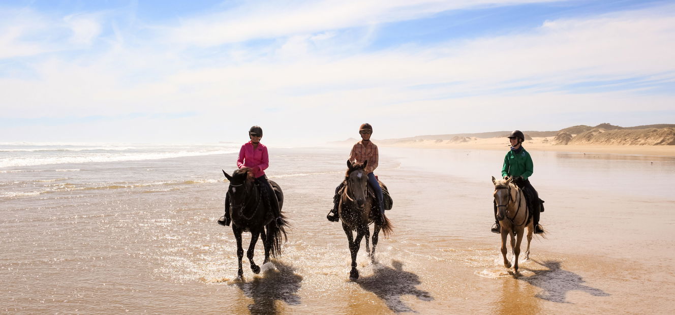 Twin Coast Escape: This is a relaxed holiday where riders can grow their confidence and skills on the trail at a walk and occasional trot. Cantering will only happen if the whole group feels confident to do so. - Weight limit