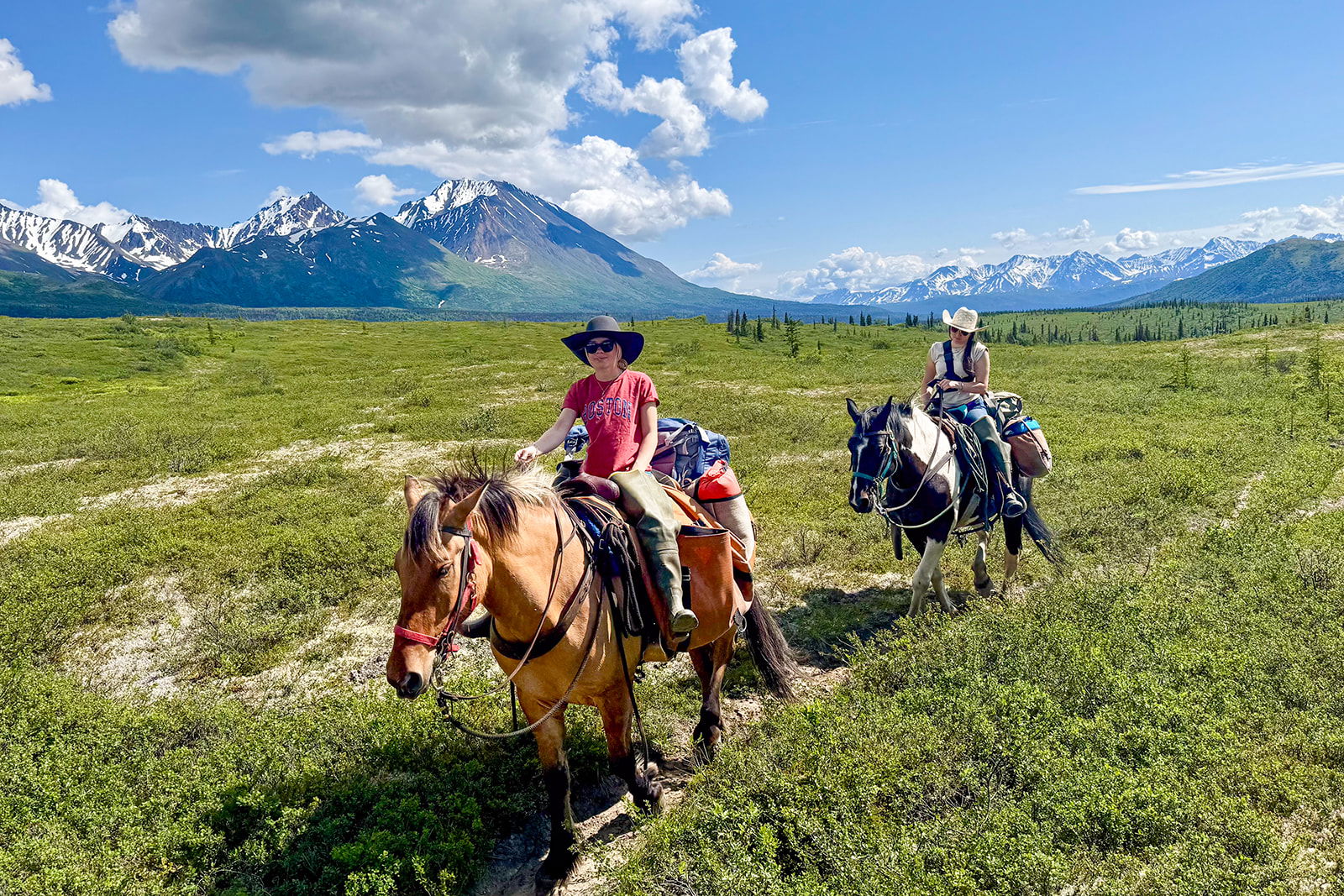 4 to 6 hours in the saddleAfter a hearty breakfast at camp, we will brush and tack up our horses for a full day’s ride, with several route options depending on the weather and terrain conditions. Lunch will be stowed in our saddlebags and enjoyed at a particularly scenic spot en route. We will be back at camp in the late afternoon, with plenty of daylight left for reading, swimming, berry picking, relaxing by the fire, or even hiking up a mountain if you’re feeling energetic!