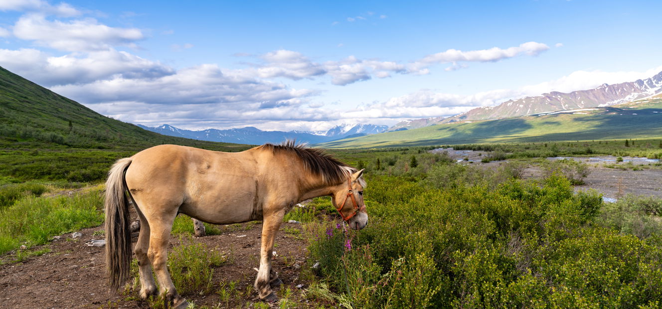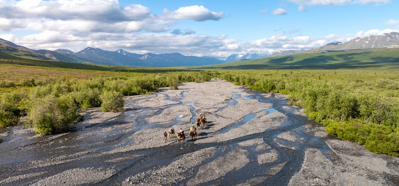 Alaska is known far and wide as ‘the last frontier’: the summer sun shines eternally, but the winter nights never end; nature sets the pace, and wilderness reigns supreme. With seasoned, mountain-bred horses and guides, you’ll ride deep into the Alaska Ranges, following caribou tracks, crossing glacial rivers, and forging your own path into the wild.