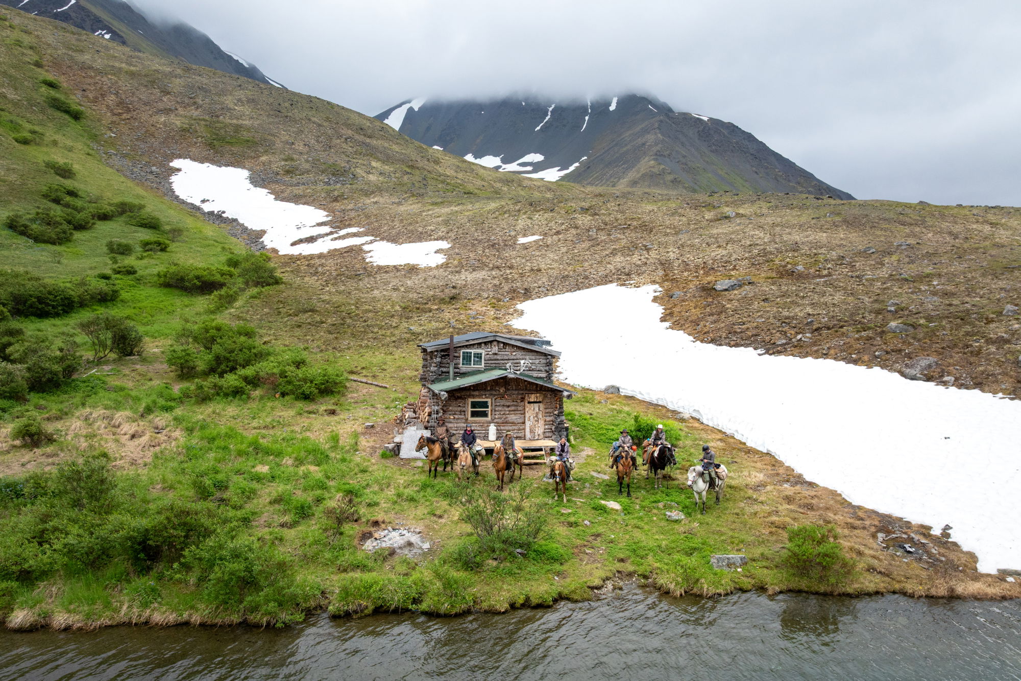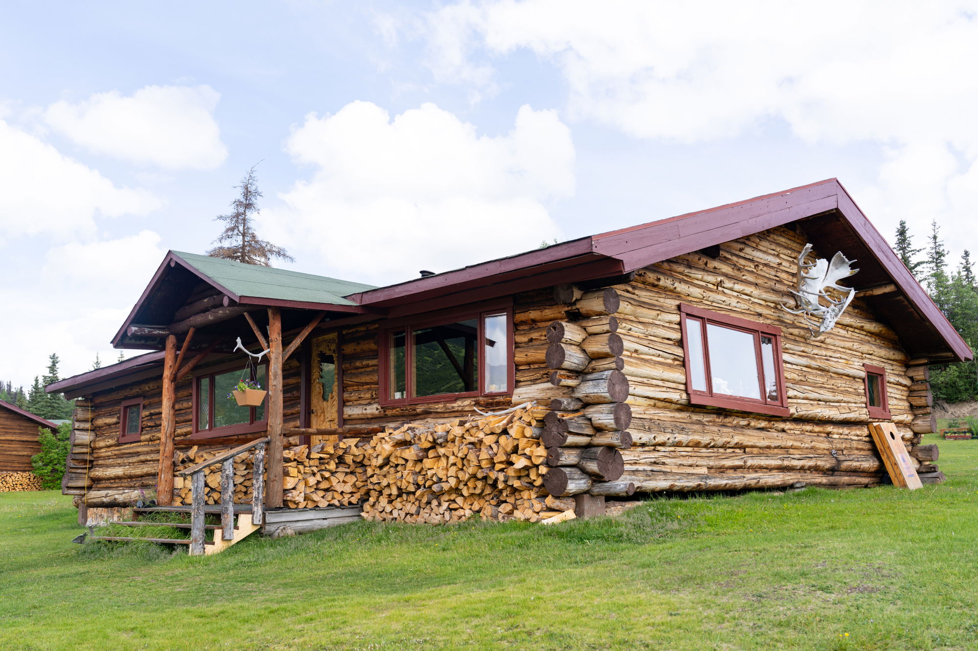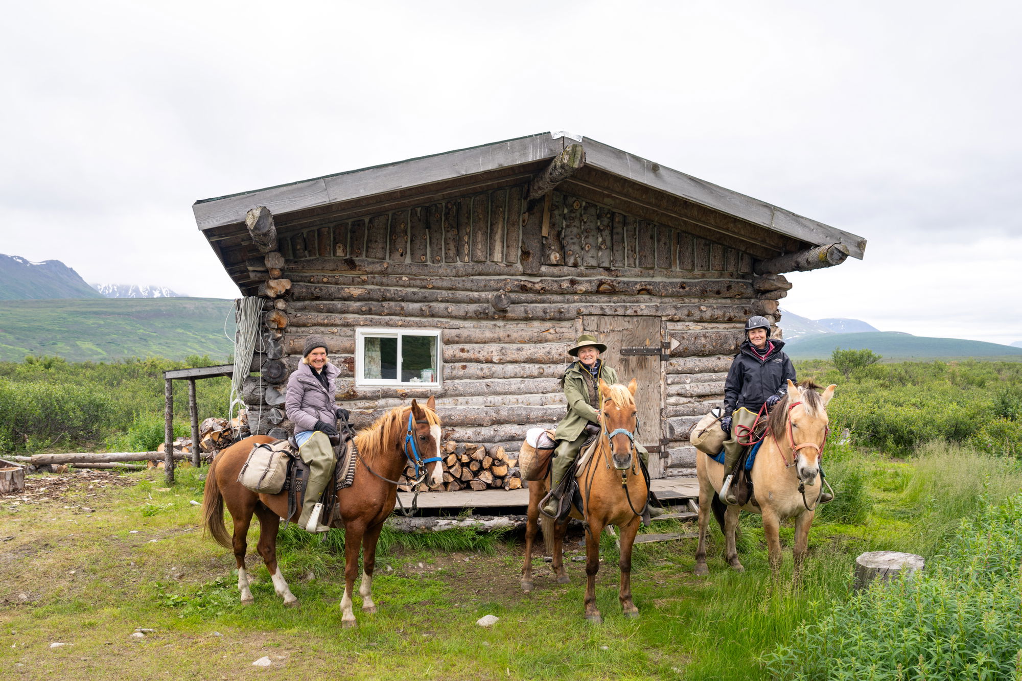 Tonight’s cabin sits above a dry riverbed (yes, they actually exist in Alaska) about 25 miles from the main lodge and 145 miles from the nearest town. There are great views across the expansive Ptarmigan Valley below, and there’s the option to ride into the valleys behind the cabin for potential wildlife sightings. The front deck will hold a strong lure, though, with its beautiful outlook and the promise of cold drinks and hot food!