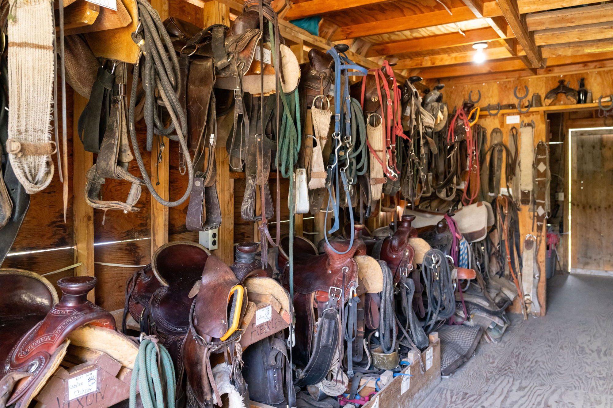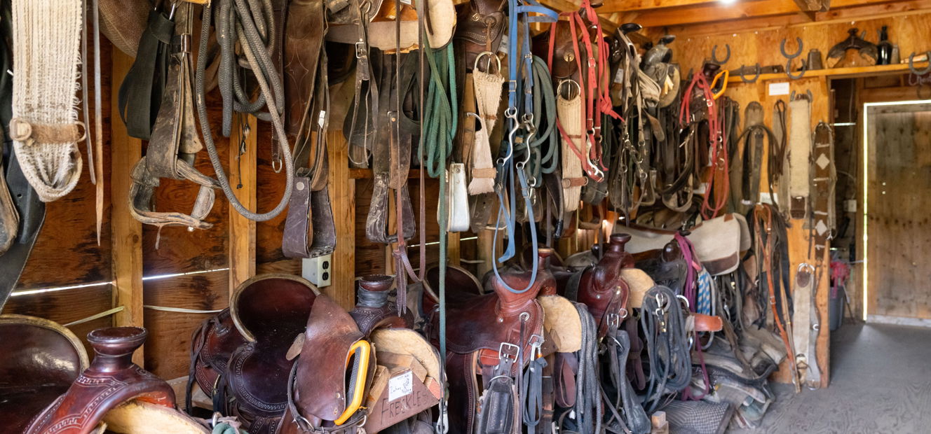 Western saddles and bridles.