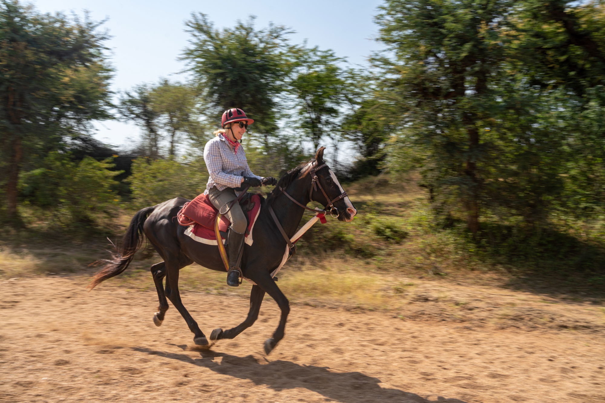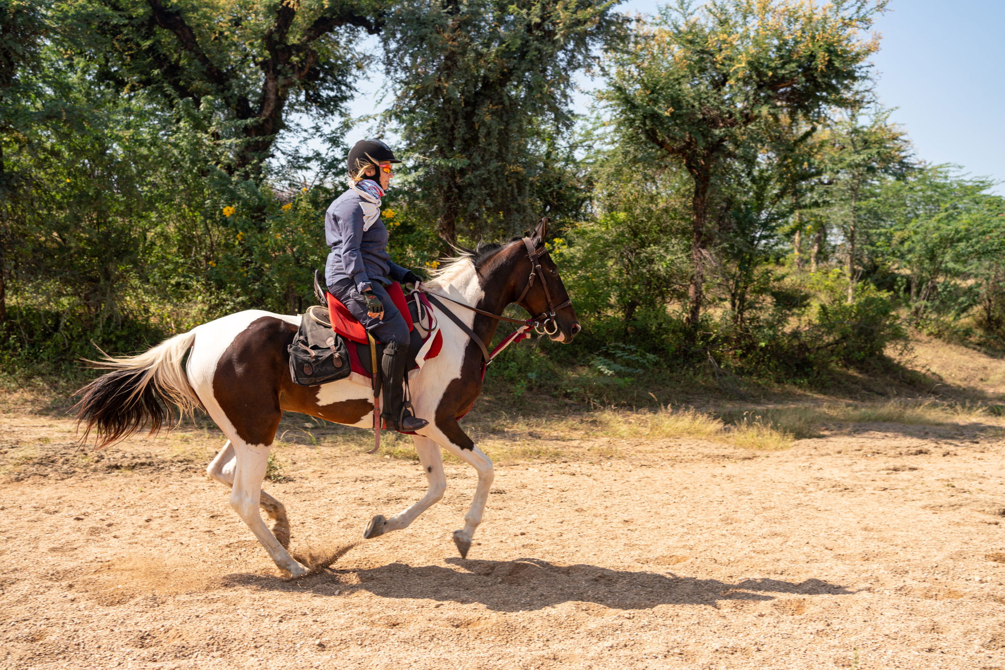 An intermediate rider who is currently riding regularly outside of an arena and is fit enough to ride for at least six hours per day. Strong intermediate riders are comfortable and competent in all three gaits; able to post or sit to the trot; have an independent seat while cantering (don’t hold onto the saddle); and can pick up the correct canter lead. They can also navigate more complex terrain, including asking a horse to sidestep and jump over a small obstacle.