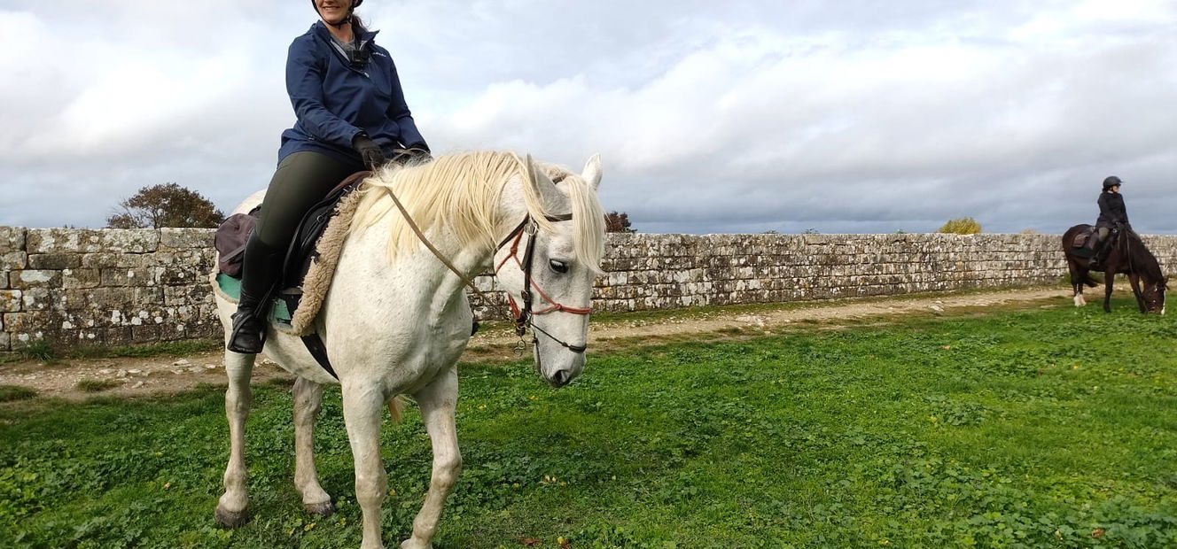 Reasonably confident riding a horse at a walk, a rising trot, and learning to canter.