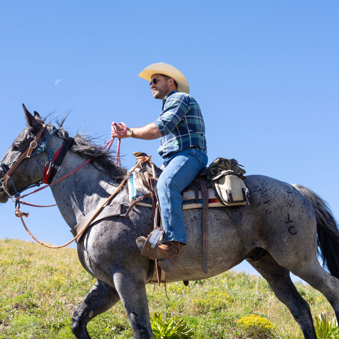 3 to 4 hours in the saddleYeehaw, your back country adventure begins today! Your hosts will collect you from your hotel at 7am. A short, picturesque drive takes you to the office just south of Jackson Hole, where you’ll check in and be given a quick orientation. Then you’ll be driven to the trailhead, where the horses and mules are patiently waiting. Here, gear will be loaded onto the mules and you’ll be matched with your sturdy steed for the week.