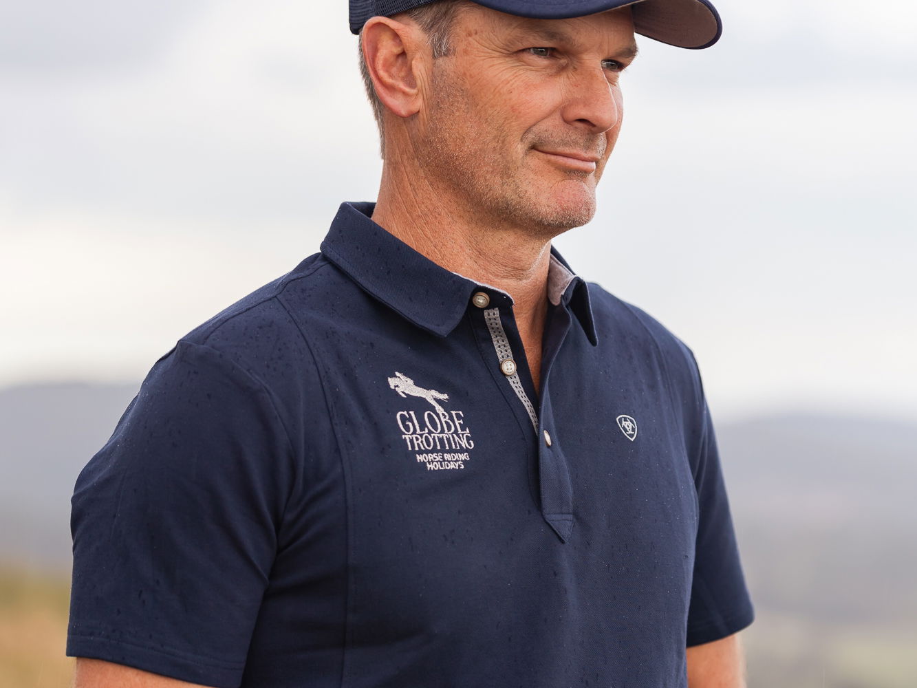 View sizing chartThe classic polo shirt, Globetrotters. We looked high and low for a polo shirt that we were happy with for both riding and everyday use, and we’ve found it. We love that it’s a cotton/spandex stretch fabric and that the cut of the shirt sits on the belt line, so you don’t have to tuck it in.
